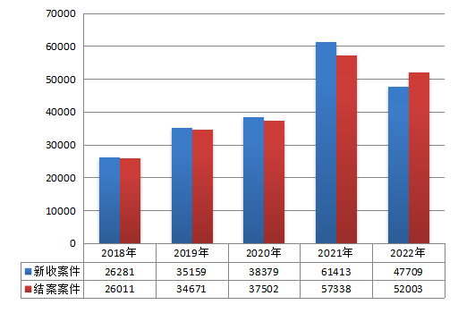图表1:近五年办理案件数量情况(单位:件)