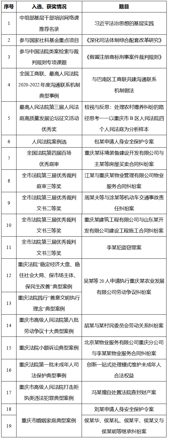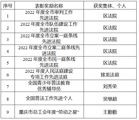 过去一年,面对办案结案任务重、责任大、困难多的境况,区法院全体干警团结奋进、迎难而上、实干苦干,审判执行工作质效水平明显提升,市级目标管理绩效考核位居全市法院第4名,荣获全市法院一等奖,获评审判工作先进法院、队伍建设先进法院,4个业务条线被评为全市先进,取得7项全国性学醭晒�52人次荣获国家、市、区级表彰奖励。这些成绩和荣誉的取得是区委坚强领导、区人大及常委会有力监督、区政府、区政协大力支持的结果,同时也离不开党政机关、社会各界和人大代表、政协委员的支持帮助。在此,我代表区法院表示衷心感谢和崇高敬意。
