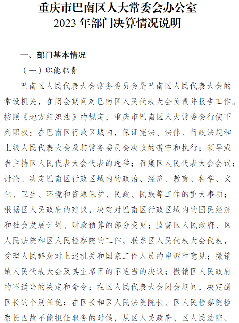 附件: 重庆市巴南区人大常委会办公室2023年部门决算情况说明及附表.pdf