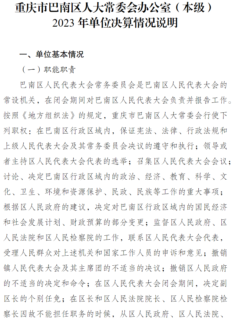 附件:重庆市巴南区人大常委会办公室(本级)2023年单位决算情况说明及附表.pdf