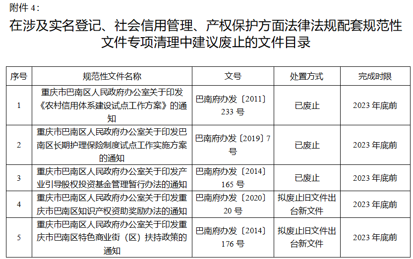 4.在涉及实名登记、社会信用管理、产权保护方面法律法规配套规范性文件专项清理中建议废止的文件目录