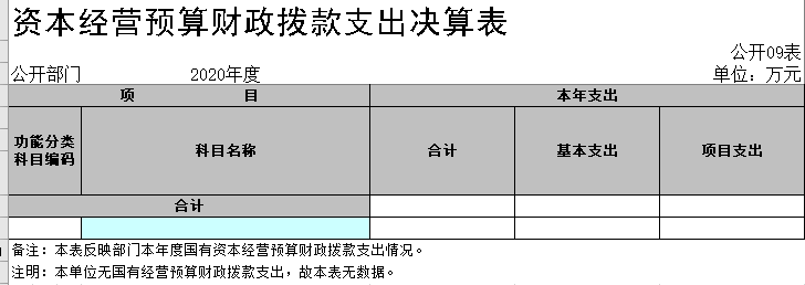 本部门2020年度无国有资本经营预算财政拨款支出。