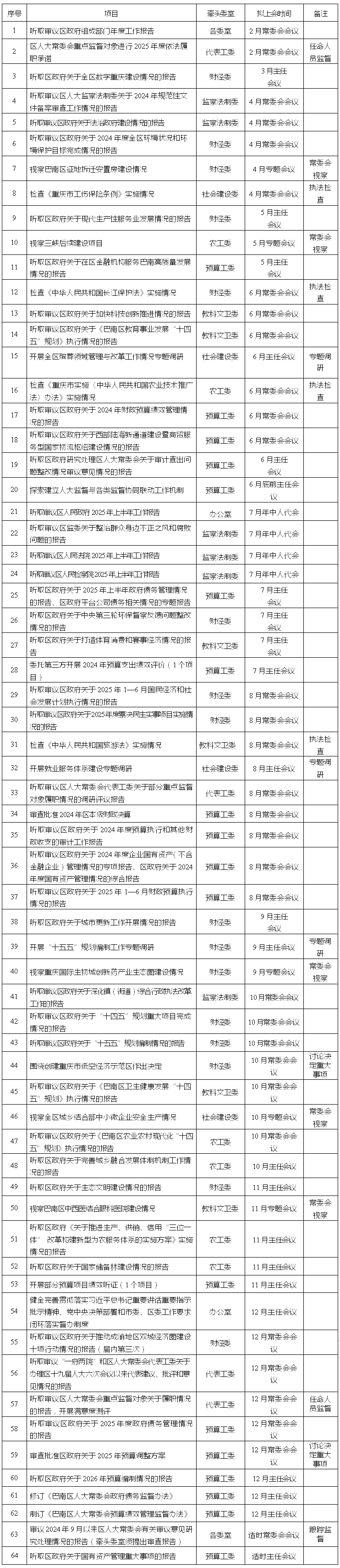 附件:重庆市巴南区人大常委会2025年监督计划安排表